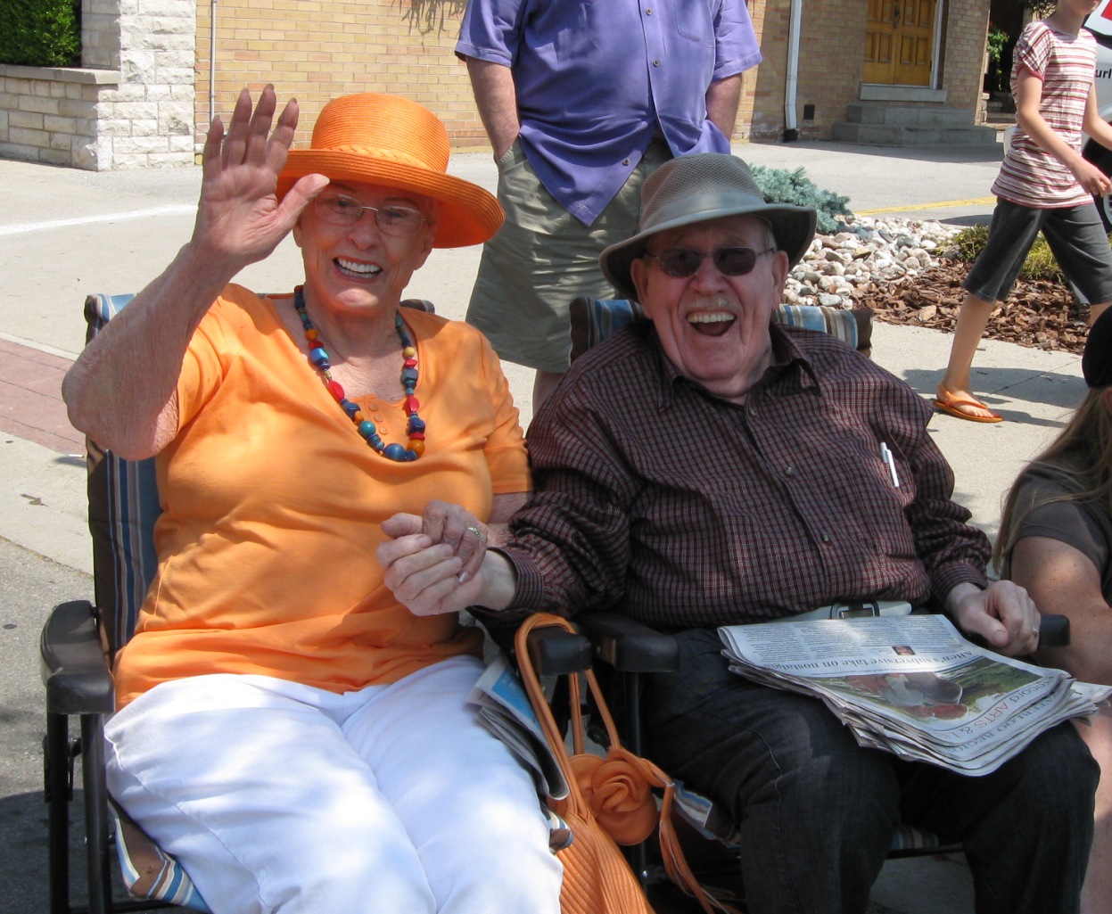 全场响起了热烈的掌声和欢呼声。坐在主席台旁边的约翰•罗宾逊夫妇举起双手欢呼,看到跟着游行队伍的记者,就激动地招手。约翰握着记者的手说:“我从八十一岁那年就开始看到他们的到来了,我今年八十四了。我们每年都在等着他们,因为我最喜欢他们,他们是最好的乐队。我希望永远都能看到他们的到来。”