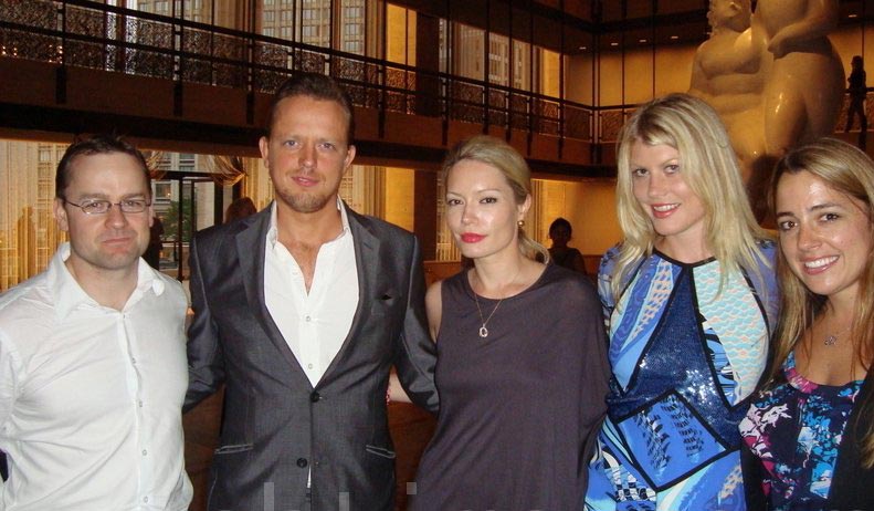 ![]() 英国著名时装公司总裁爱德华·切普曼(左一)和朋友、华纳兄弟唱片公司品牌关系部门主任米歇尔·埃德加(Michelle Edgar)(右一)。 |