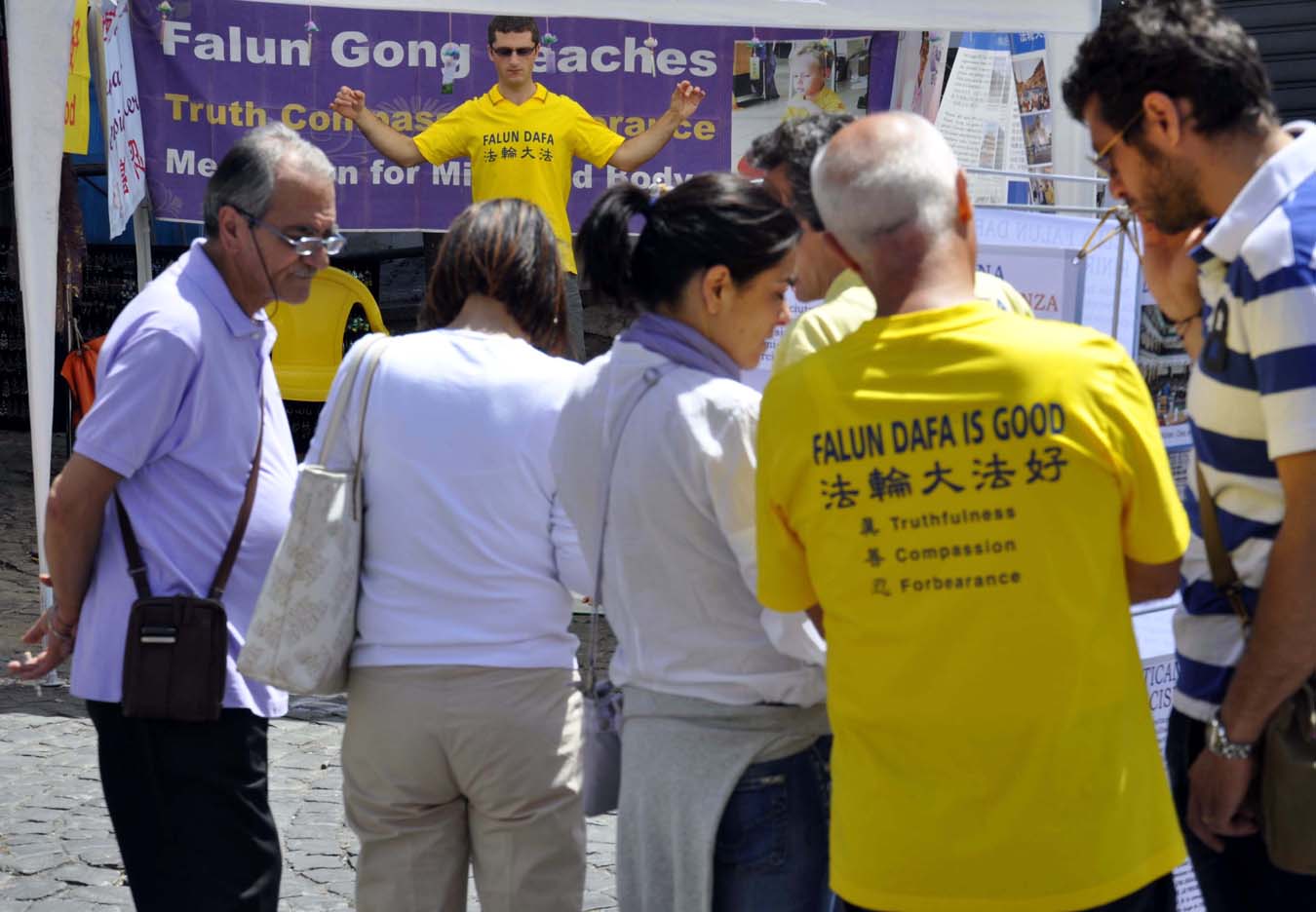 ![]() 法轮功学员在真扎诺蒂罗马小镇的花节上讲真相 |