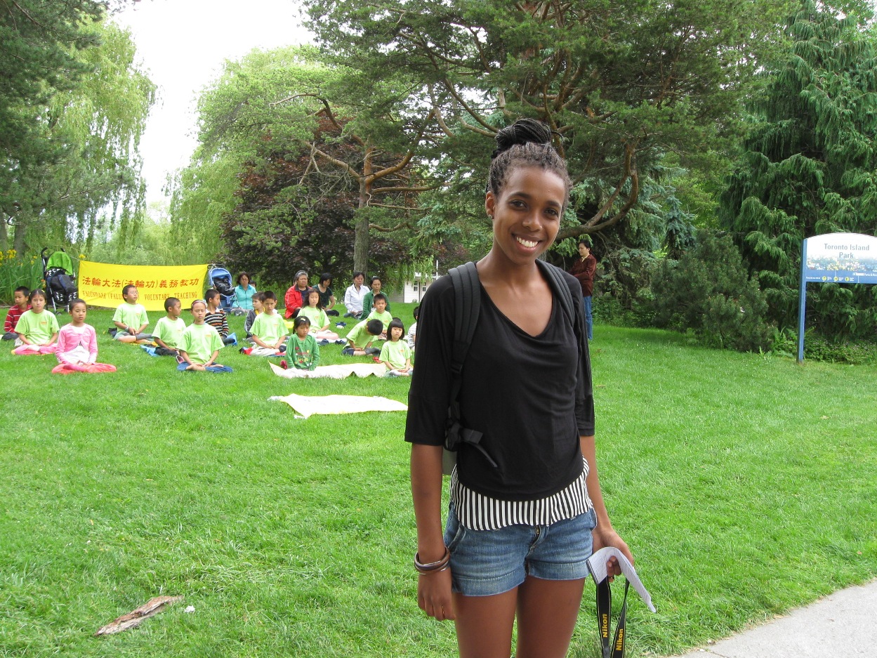 多伦多怀雅逊大学(Ryerson University)新闻系的实习生索拉纳(Solana)说:“这么祥和的功法,这么可爱的孩子们。我看到他们,都想跟着他们一起打坐。现在的世界很混乱,人的思想不清净。这些孩子,能这么平静地打坐,在这个世界上能暂时远离电子游戏而平静自己,真是一个非常好的让人返本归真的体验。我都想炼了。”