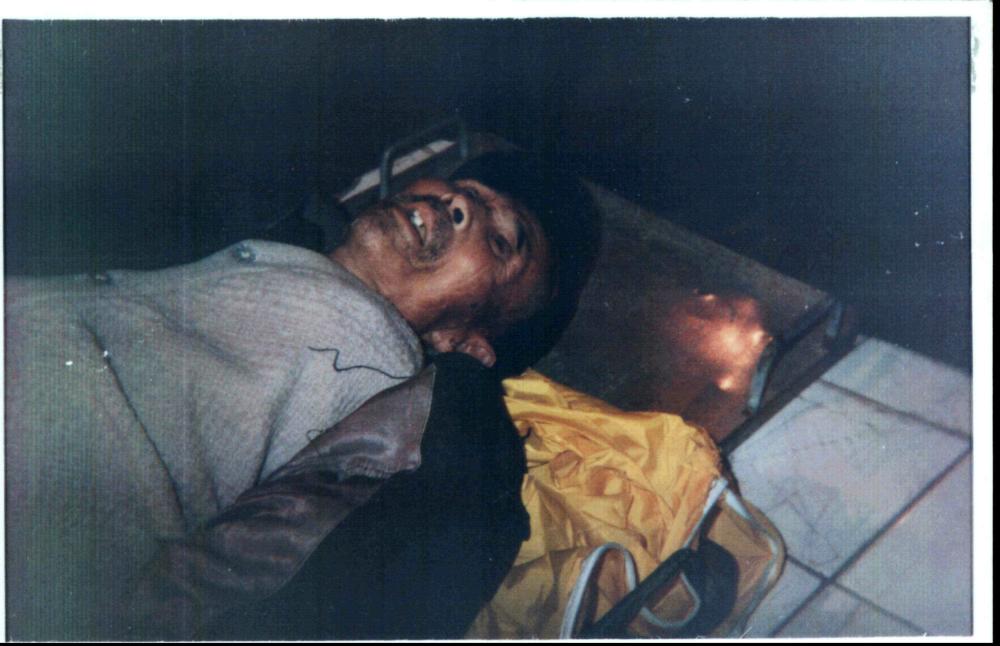 直到所有人都认为盖秀龙不行了,随时都有生命危险,恶警才让同在其它监室遭受迫害的盖的父亲,把他背到看守所办公室,当时就吐了几口血。看守所为逃避责任,赶紧将他们父子二人推出门外。可怜一个六十多岁的老人,经受了地狱般的折磨后,已是虚弱不堪,咬着牙背着生命垂危的儿子一步一步艰难的走出了看守所……