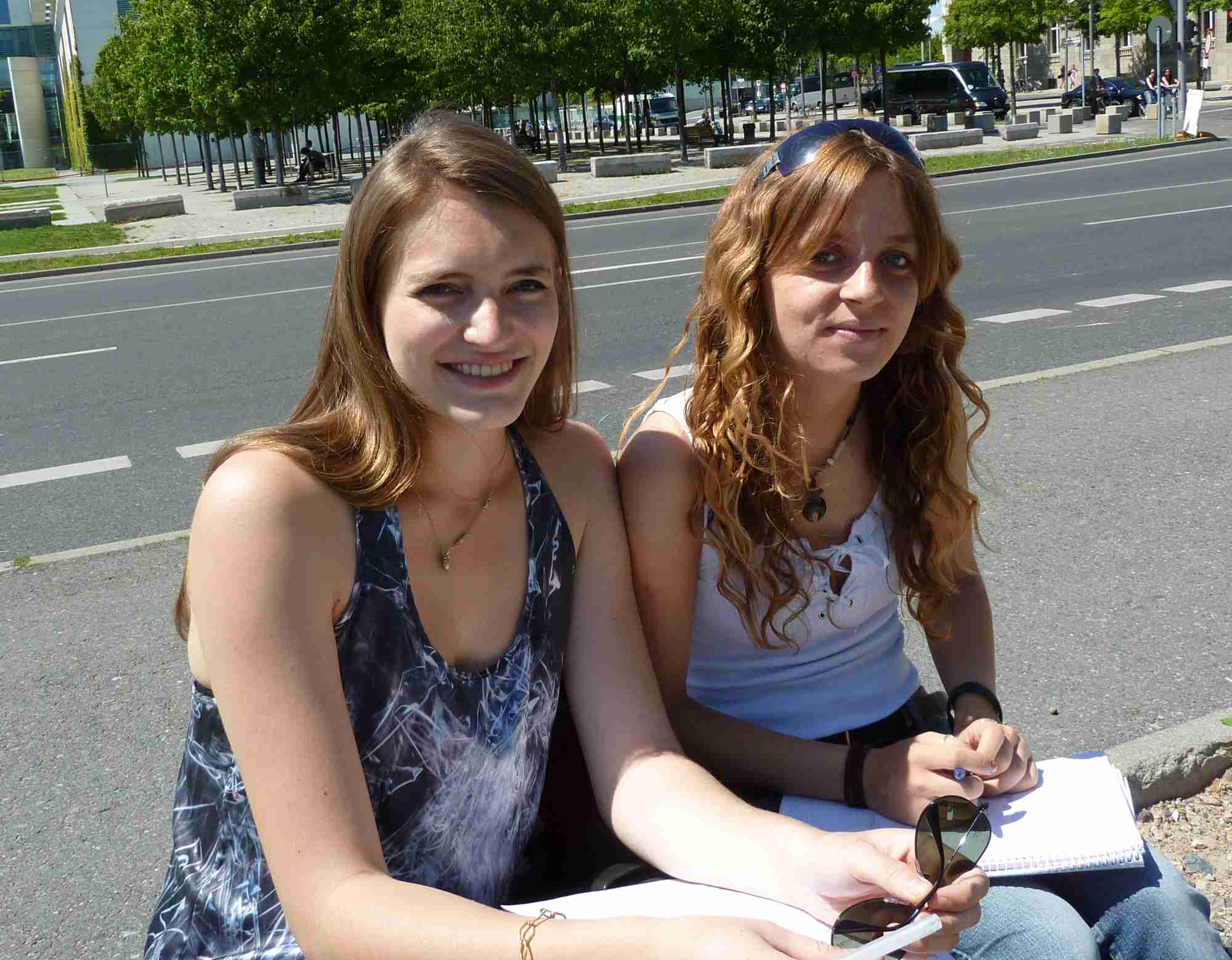 格里德纳浮(Tatjana Gridnev)和哈娜•伊森布格尔(Hannah Isenbügel )在柏林洪堡大学学习社会学和文化学,有一节课要求学生写报道文章,正好赶上温家宝到德国访问,她们觉得一定有些东西可以写,就到总理府前看看,结果碰到法轮功学员的抗议队伍。她们索性在对面坐下来观看,并和法轮功学员攀谈。哈娜表示,因为这个题目,她们两个去看了很多关于中国的资料,她看着在德国总理府前抗议的法轮功学员说:“中国没有信仰自由、言论自由,对我这样在民主制度下长大的人来说,是不可想象的。”她脸上的表情将她内心受到的触动显露无遗。