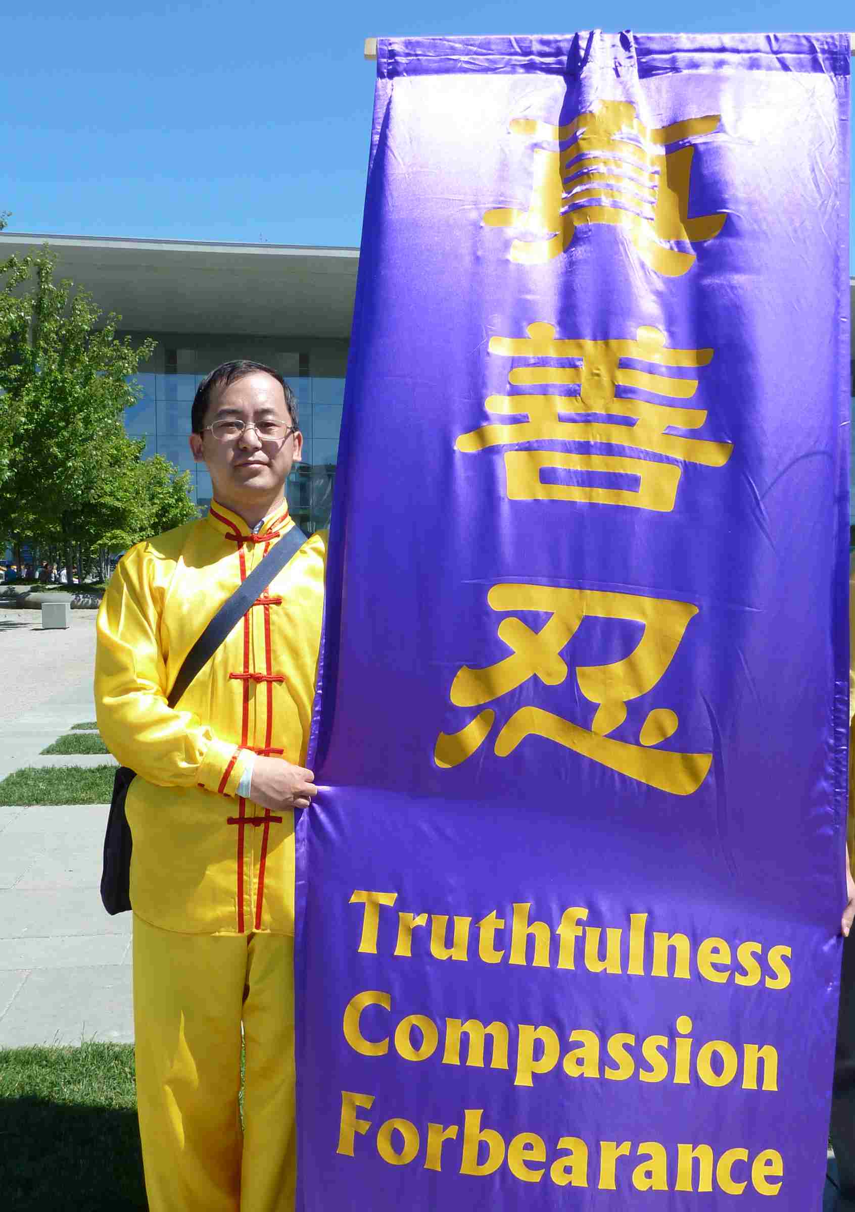 看到温家宝的车队缓缓驶过的时候,他眼泪都快要流下来了,因为他想到了前几天他的家乡又有三名法轮功学员被非法抓捕了,他还想到了自一九九九年法轮功被迫害以来,他熟知的九名法轮功学员在迫害中不幸去世。他说:“他们现在都无法发声了,但是我在这里可以为他们说话。我在中国的时候,曾经去上访,去天安门广场请愿,根本都不可能见到那些中共官员,讲我是如何从法轮功中受益的。但是在德国这个有信仰自由和言论自由的社会里,我可以表达我的想法,希望温家宝能够了解真相,凭着良心做出正确的选择,停止对法轮功的迫害。”