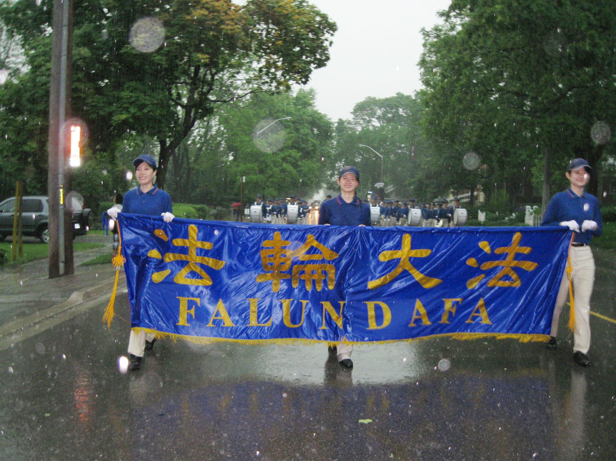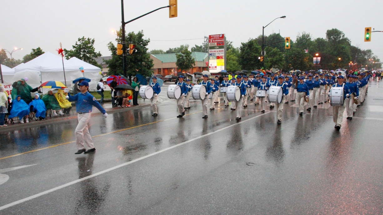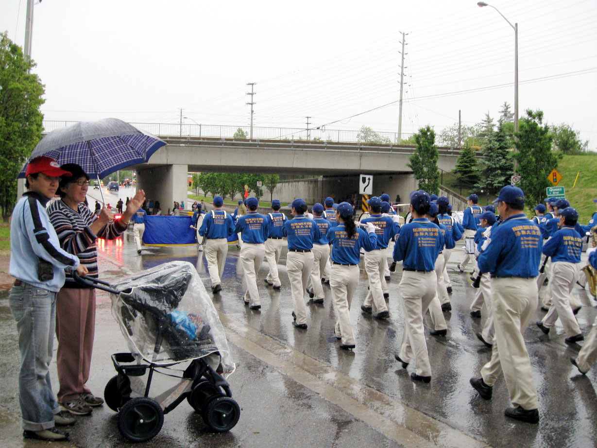 ![]() 多伦多天国乐团冒雨参加多伦多密市丰收节游行,等待出发 |