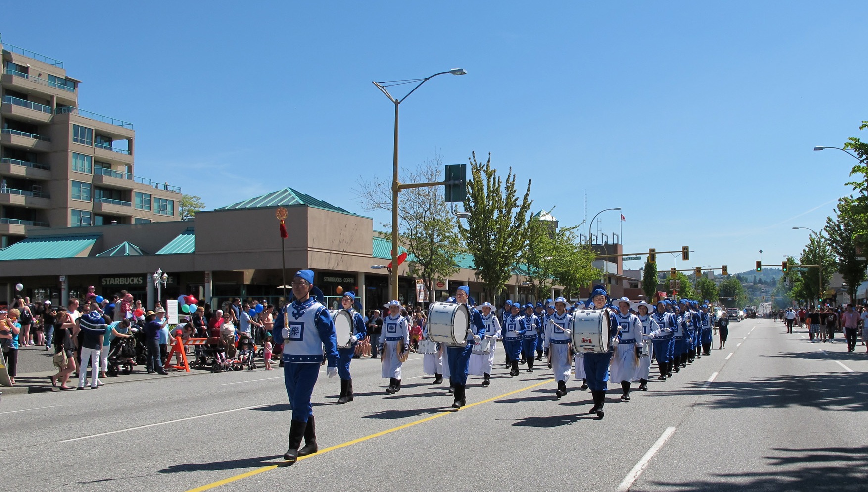 ![]() 多伦多天国乐团冒雨参加多伦多密市丰收节游行,等待出发 |