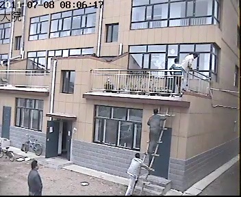 八点钟左右,这伙人竟搬来梯子,爬上二楼露天阳台,撬门而入。八名恶警闯进家后,不由分说,把裴玉河按倒在地,多人分别抓着他的手和脚,提到楼下,把光着脚的裴玉河塞进车里(车牌号:冀G4477A)强行带走。整个绑架过程中,裴玉河一直拼力反抗、挣脱,喊着“法轮大法好!”