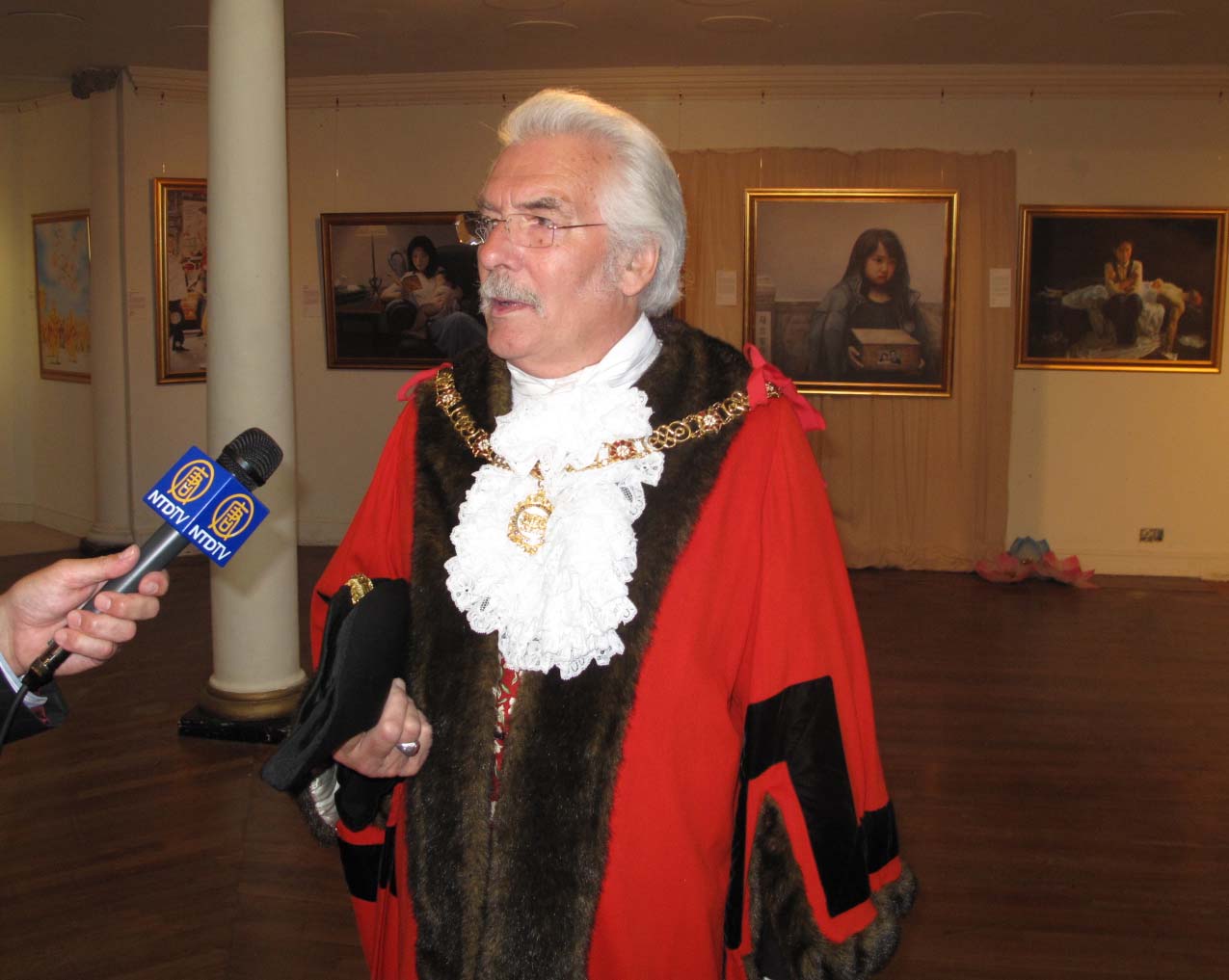 ![]() 巴斯市长布赖恩-乔克(Bryan Chalker)参加开幕式并为画展剪彩 |
