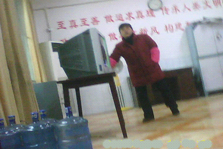 ![]() 位于一楼的这间会议室,常常被用作对大法弟子進行强制洗脑和灌食迫害。一包夹正在播放电视。 | ![]() 画面电视里说的是“我们两个过年回家来啊”,然而大法弟子李喜慧在此洗脑班已经被非法关押六年了,却不得回家。 |