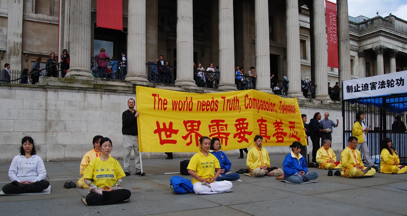 ![]() 英国法轮功学员在伦敦鸽子广场展示功法和中共迫害真相 |