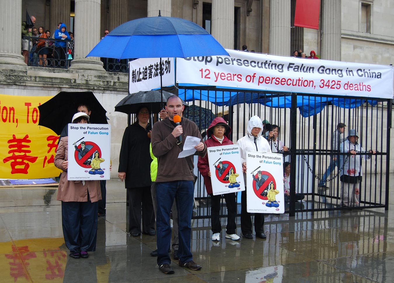 除来自英国的法轮功学员外,还有一些法轮功支持者,他们冒雨参加了当天的活动。
