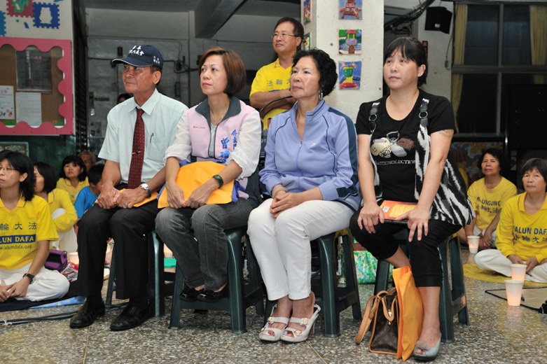 下午四时,法轮功学员移师恒春古城附近,继续向当地商家讲真相。夜幕降临时,学员们则与前来声援的当地政要每人一盏烛光,在恒春古城旁的恒春国小举行烛光悼念会,追悼那些为坚持真理、维护正义而失去生命的中国大陆同修。肃穆祥和的烛光悼念会感动了与会的嘉宾们,纷纷谴责中共的暴行。