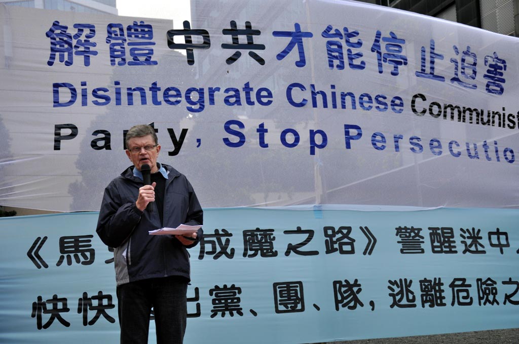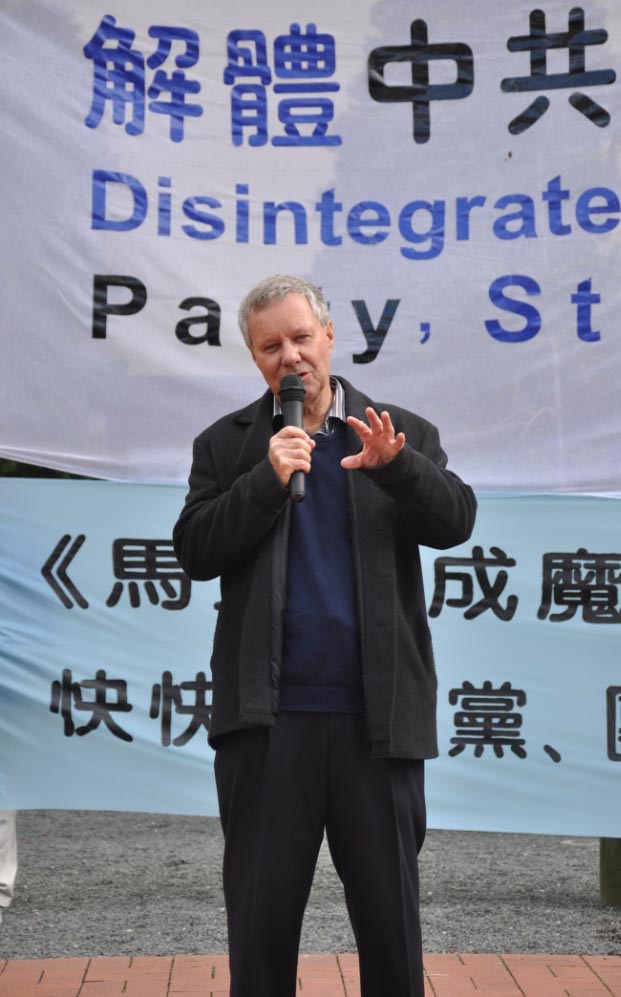 余先生在发言中说,中共其实不仅是对法轮功的迫害,中共六十年的独裁统治,剥夺了人民的基本人权,迫害死八千万中国人,破坏中国传统文化。中国人民在恶党的暴政下有冤无处伸,中共邪*党-是中国人民痛苦的根源和中国一切社会罪恶的根源,所以他建议海外的华人看一看《·九·评*共产党》这本书,从本质上认清中共邪*党-的本质,不要做它的陪葬品。他并呼吁中国民众赶快声明退出中共恶党及其组织。