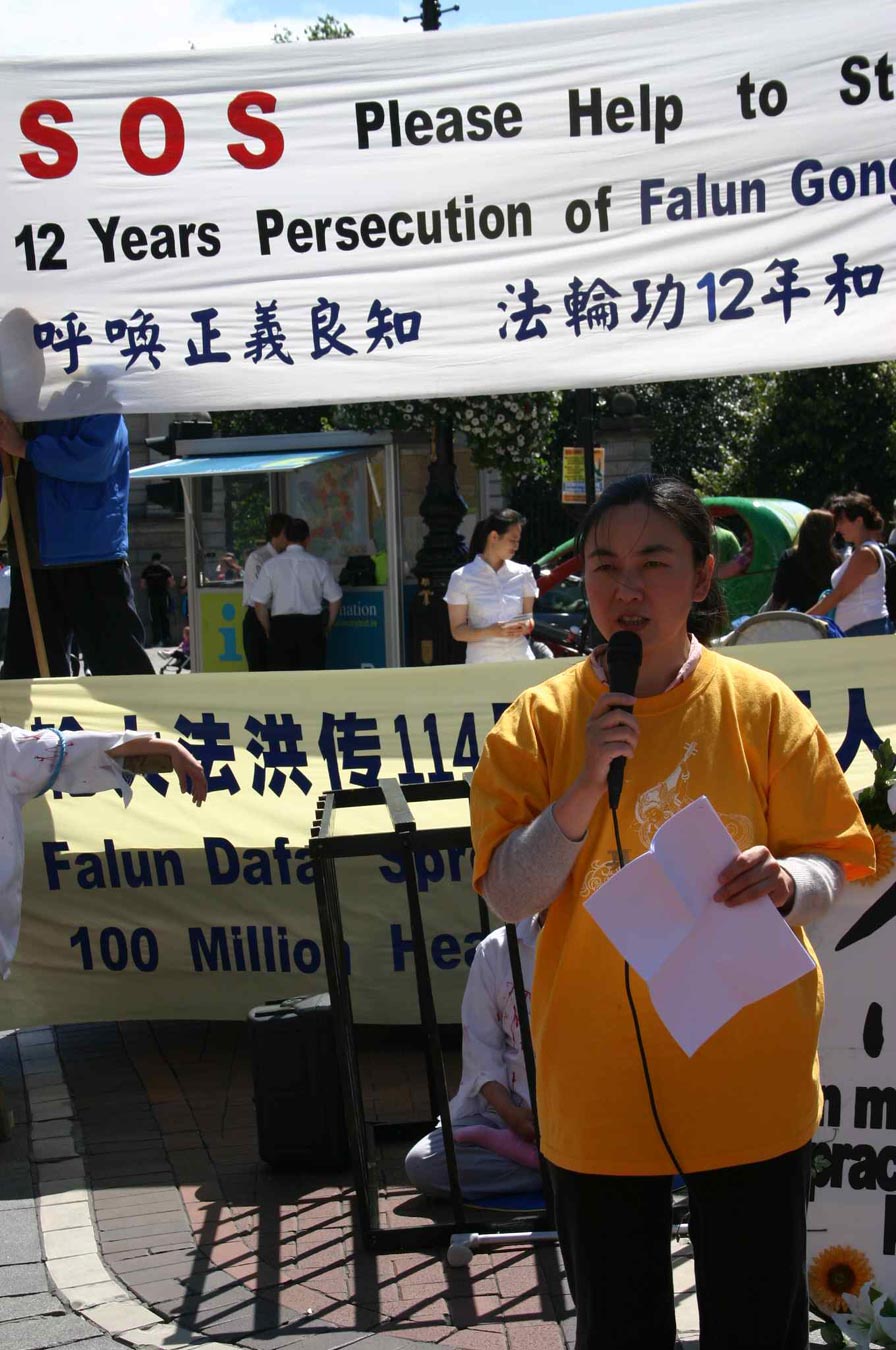 “我呼吁政府领导们,尤其是爱尔兰,向欧洲和世界各国政府施加压力,不要忽略或者假装看不见在中共统治下一直发生的、不可接受的对人权的侵犯和政治迫害,尤其是对法轮功的持续迫害是无法忍受的。政治自由和对人权的尊重,不能在单独经济利益的目标下被忽略或者搁置一边。”