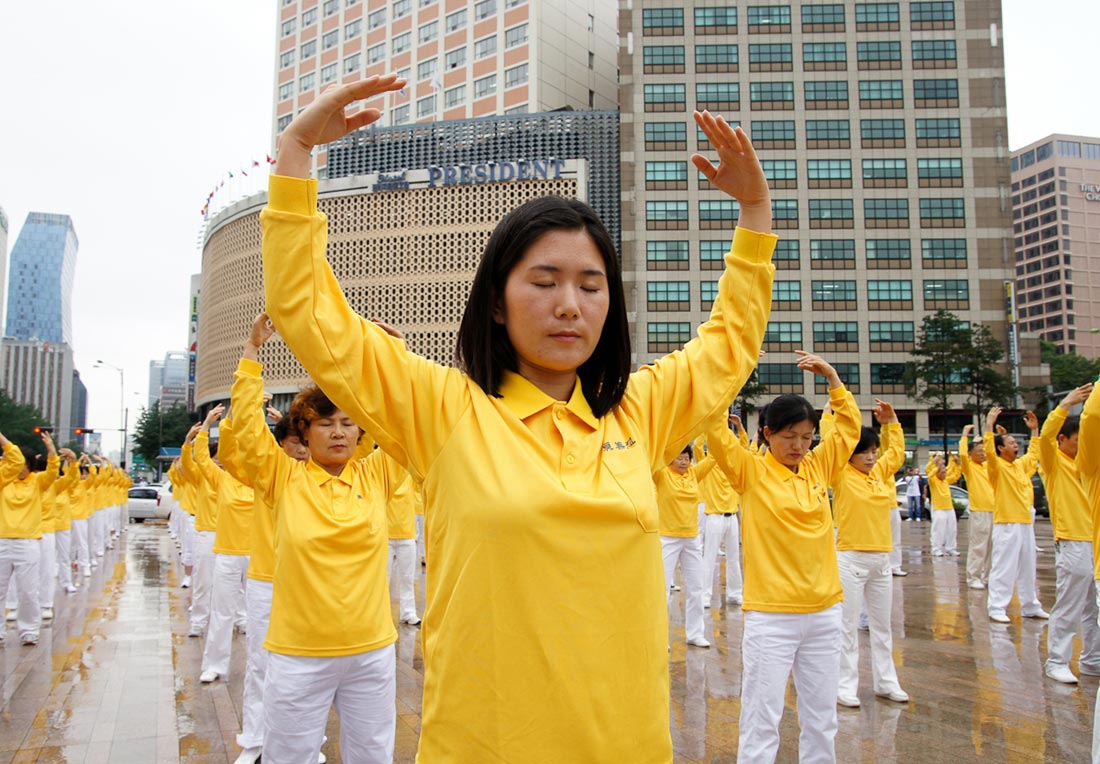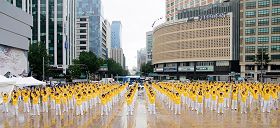 ![]() 二零一一年七月十六日,韩国八大市民团体与法轮功学员冒雨在首尔广场举行联合集会,谴责中共对法轮功长达十二年的人权迫害。图为韩国法轮功学员集体炼功场面。 |