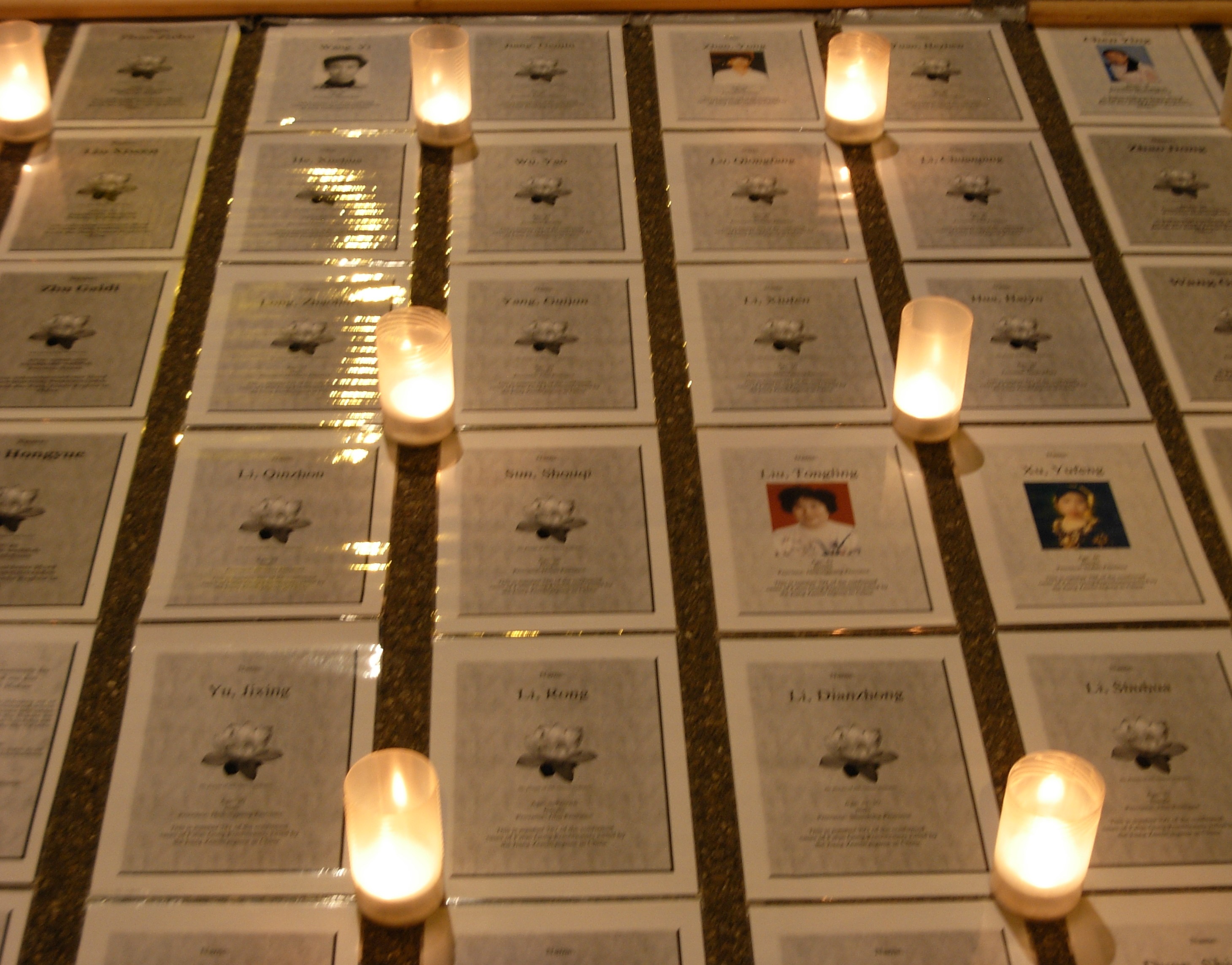 ![]() 每张照片、每个名字都代表着一位曾按照“真、善、忍”生活,却被中共迫害致死的修炼者。点点烛光,寄上一份哀思,也让更多人来了解真相。 |