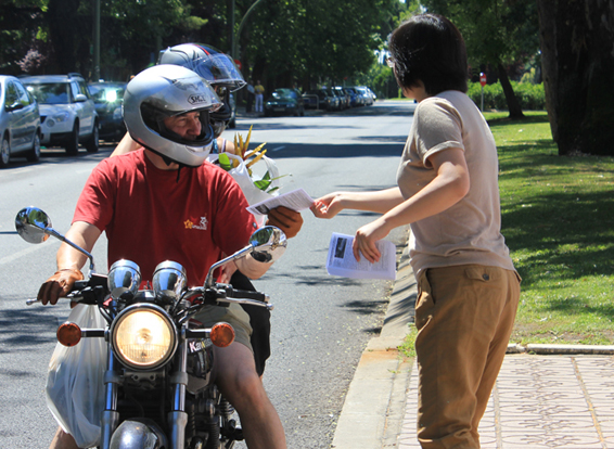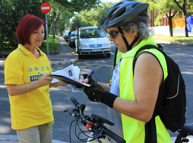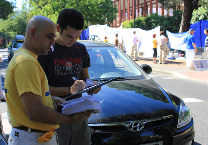 ![]() 这位开车经过的西班牙年轻人特地停下车来签名声援法轮功反迫害 |