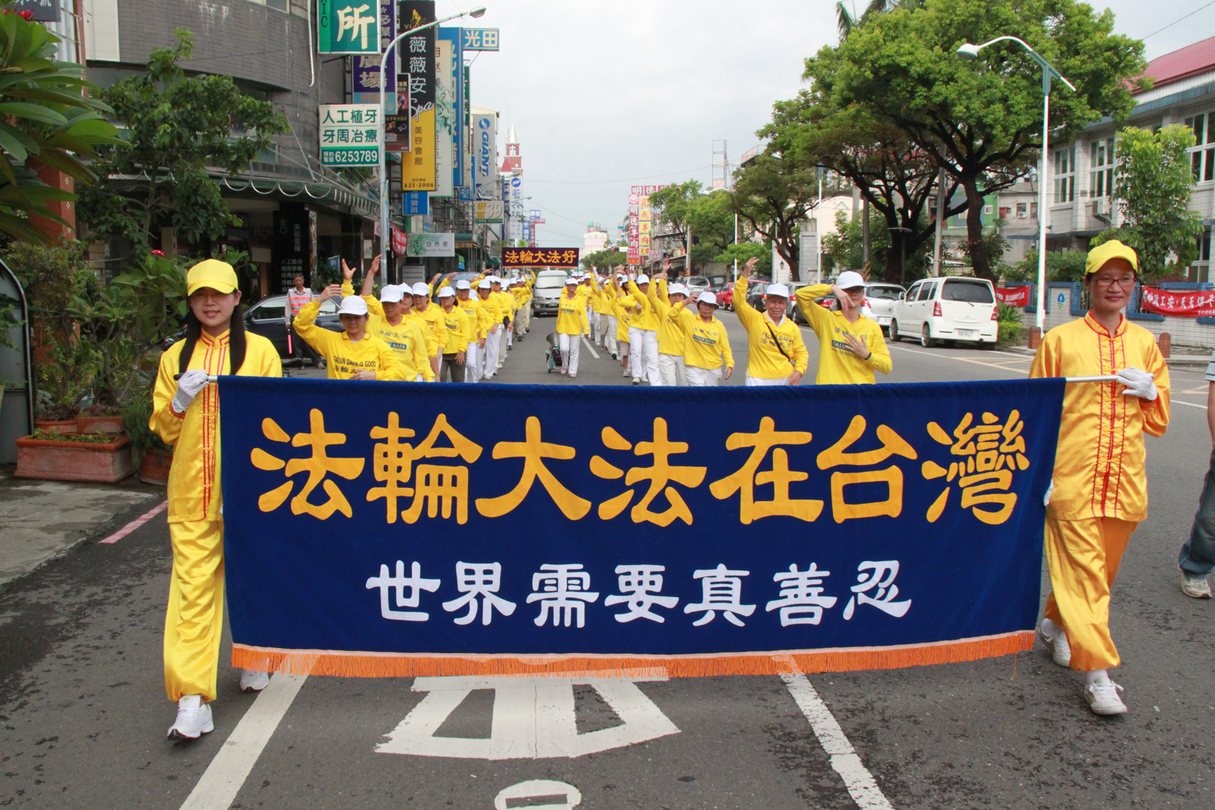 ![]() 法轮功学员于高雄冈山区踩街,将法轮大法好的福音广传乡民 |