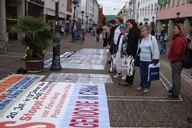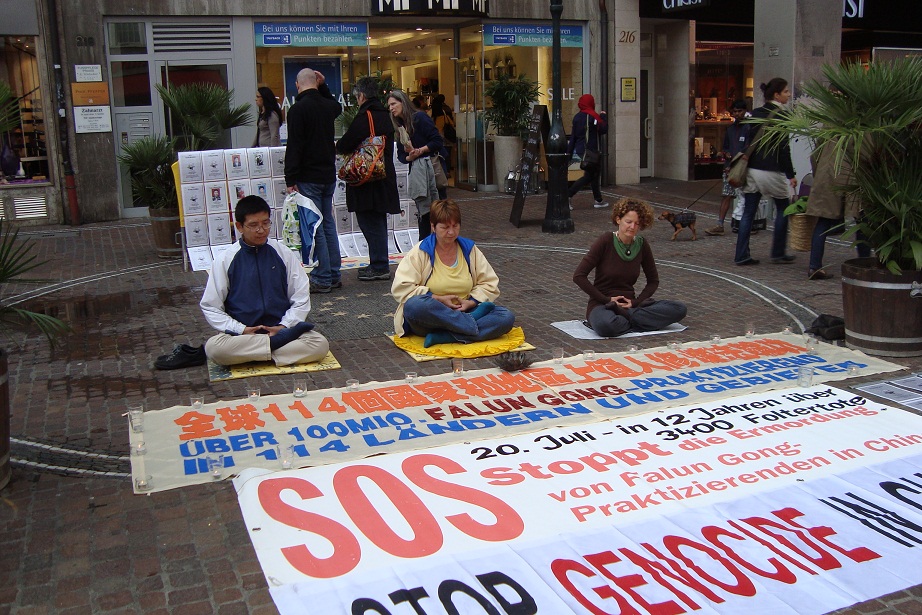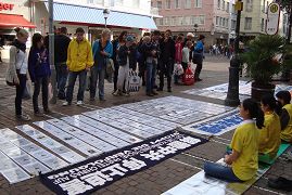 一位德国妇女问学员,这是什么活动,为什么如此肃穆?她听了法轮功在中国受迫害十二年的真相后表示,应该将这些重要信息告诉我们的政府和议员们,让他们站出来制止中共践踏人权的罪行,如果漠然处之,允许这样的罪恶持续发生,作为政治家是不光彩的,作为政府是负有道义责任的。当听说今天全世界有很多国家、地区都有法轮功学员在举行这样的反迫害活动时,她有些吃惊,随后高兴地说:“支持你们!祝你们好运!”