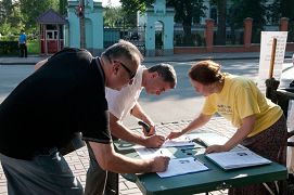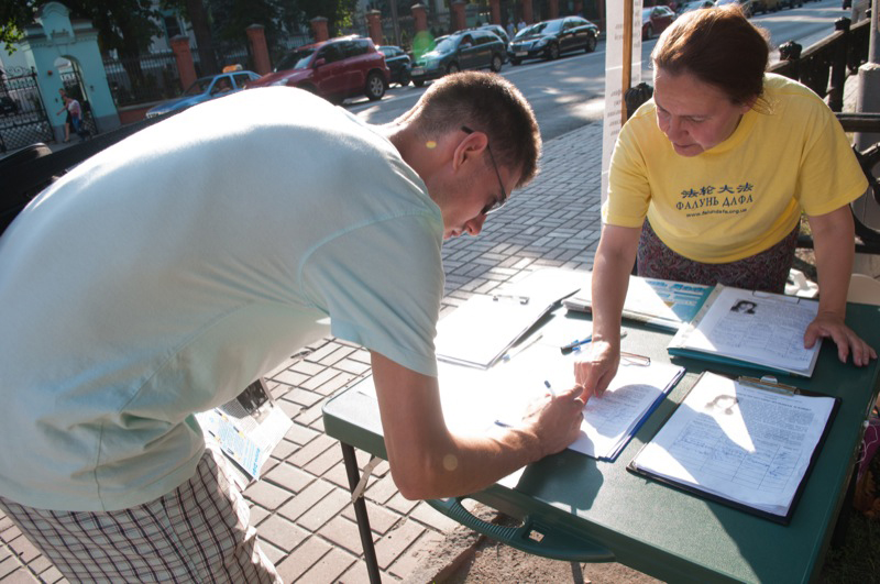 与往年不同的是,许多乌克兰的官方媒体采访了今年的反迫害活动,在整个采访过程中,他们为法轮功学员们大善大忍的精神所感动,在采访结束后纷纷签名支持反迫害活动。