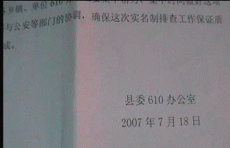 7月18日,县“六一零”在发出加强迫害的通知后,又下发了实名制排查大法学员的工作意见,该意见第3页第4个问题“排查信息工作要注意保密。不得向法轮功人员采集,防止授人以柄”,不难看出,他们所干的一切都是见不得人的勾当,是最怕曝光的。
