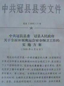 6月6日,中共冠县委抛出了【冠发二零零八•十五号】文件,以奥运的名义制订了一系列的打压政策,锁定五个大的打压对象,其中以法轮功为首。为此,成立了以县委常委、政法委书记韩金芳为总指挥,县政法委副书记、县“六一零”办公室主任任广民、县公安局长刁培昌为副总指挥的迫害法轮功指挥部,欲全力迫害法轮功。6月7日刘强、洪玉振、张书奎、韩金芳等在冠州宾馆开政法会议,公开讲以法轮功为敌,再次利用电视肆意攻击法轮大法。