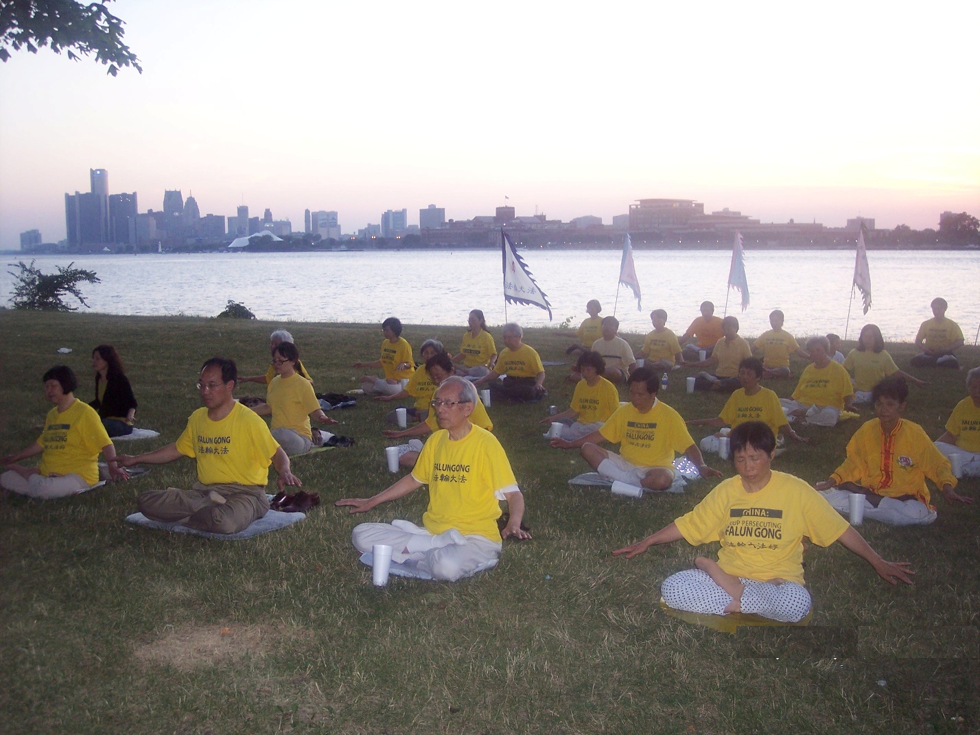夜幕降临,静静的底特律河畔,学员们点起了一盏盏蜡烛,点点烛光摇映着法轮功学员们一张张祥和,坚定的脸庞。就职于某跨国公司的资深工程师,也是本次活动的组织者之一的黄先生,一边在忙碌的拉整横幅,一边不时的与过路的游人交谈,他在接受采访时说:“不还法轮功清白,我们这样的反迫害活动就一天都不会停止。如此一个平和的修心健身的功法遭到这样的迫害,是现代社会的一个耻辱。我只是在尽我一点微薄之力,大家都这样站出来反迫害,正义和邪恶一长一消,结束迫害的日子就不会远了。”