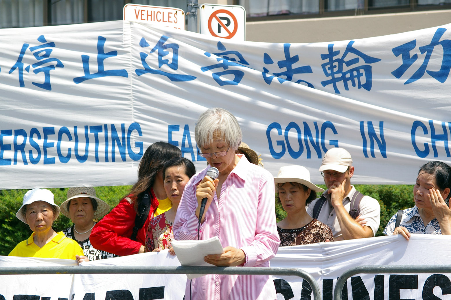 ![]() 原国家一级排球教练,法轮功学员王金香在集会上发言 |