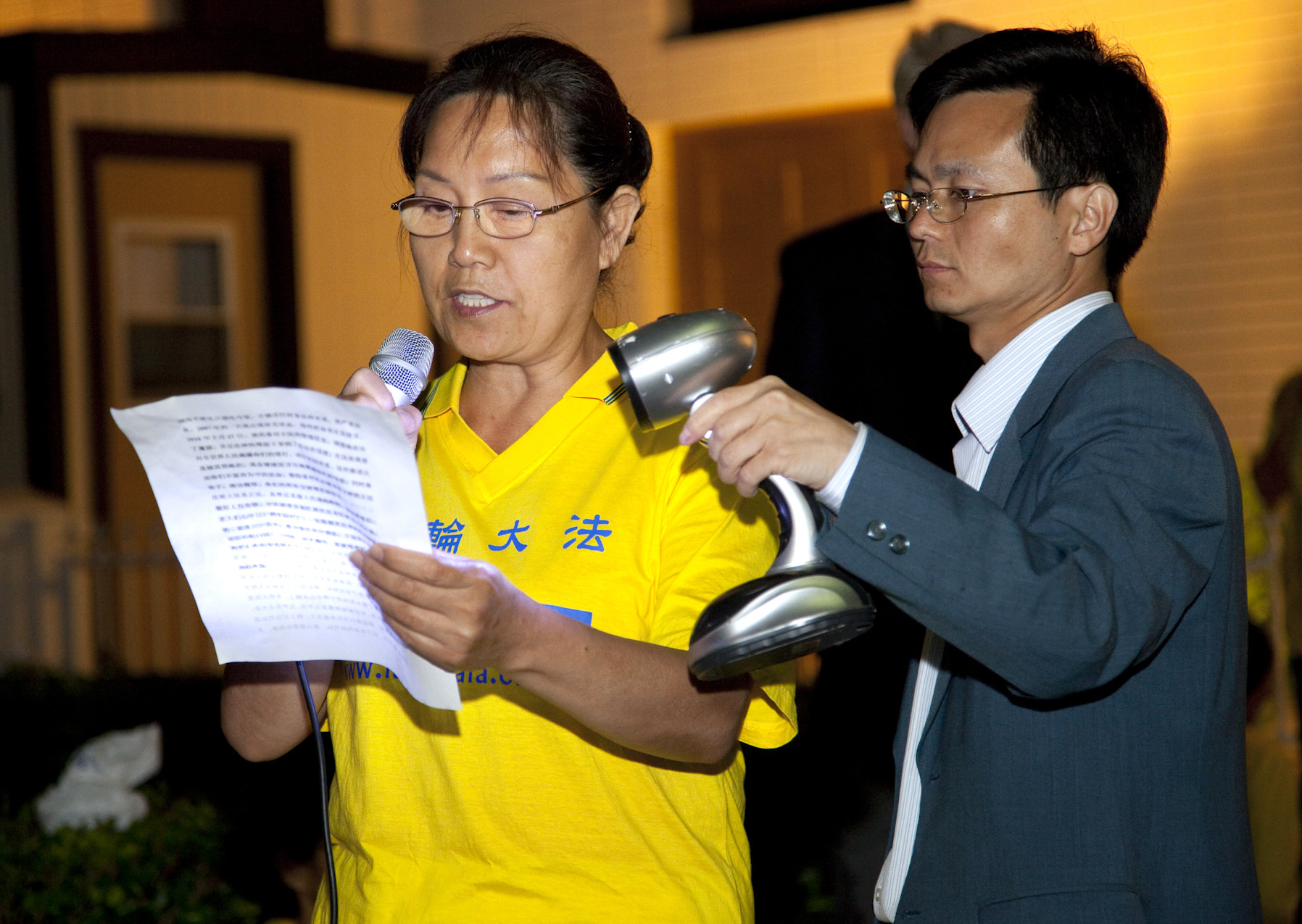 悼念活动主持人叶科博士表示:我们每年来到这里不是为了别的,就是为了千千万万法轮功学员和他们的家庭以及生养我们的国家,这种对无辜善良民众的迫害是不可以接受的和容忍的,是一场道德的灾难、人性的灾难,是整个国家和民族的灾难。