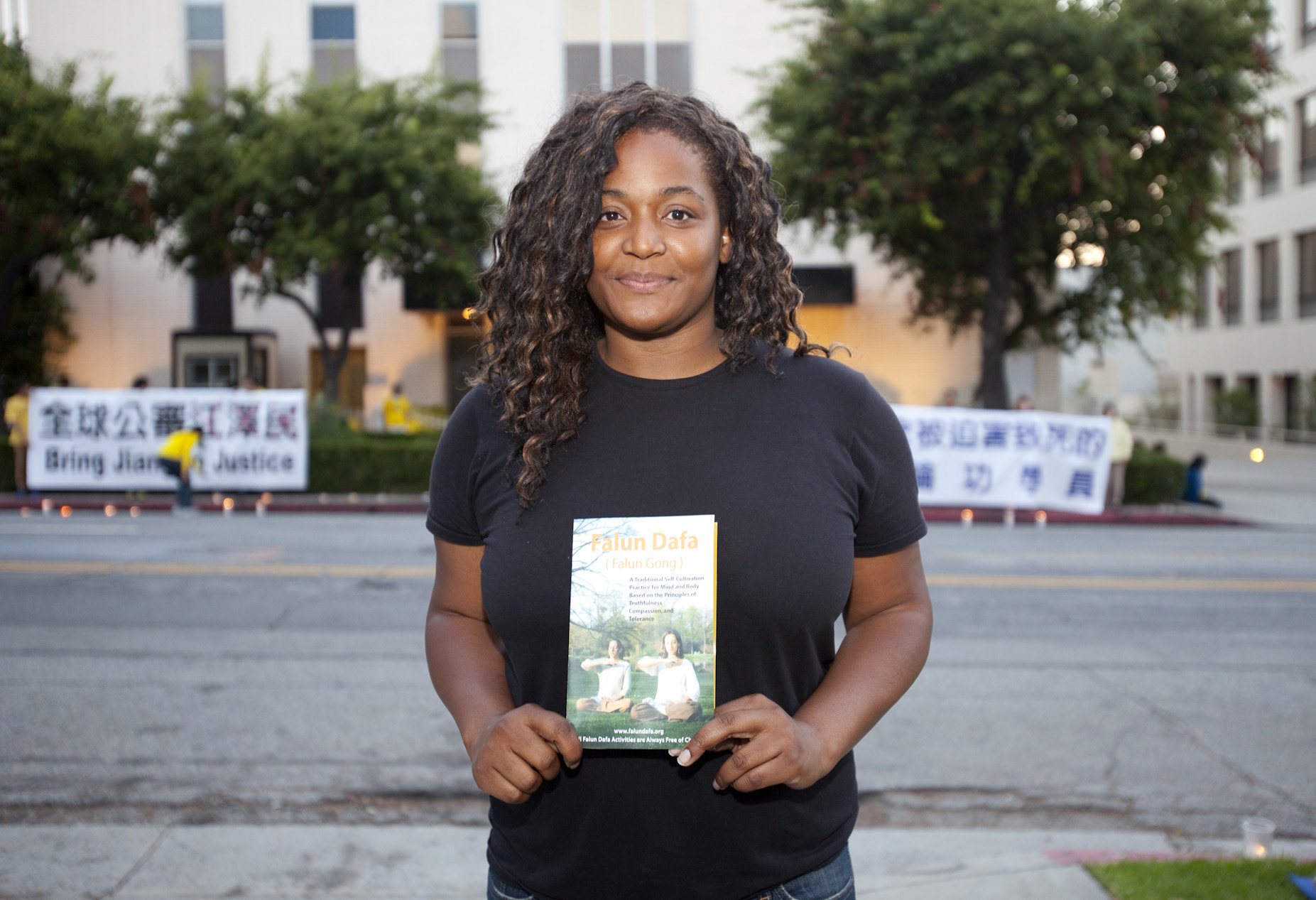 当晚的烛光和悠扬的炼功音乐吸引了一对过路青年。二十五岁的Warren Dickson和他的女友Rhonda Phillips是最近才搬到附近的居民。“我们太过陷入自己的生活,对美国以外发生的事情并不了解。”当得知法轮功在中国遭受的迫害后,Dickson表示完全支持法轮功学员反迫害的举动:“我们有完善自己的自由,我们也希望中国人拥有同样的自由……每个人都应该有权保持自己的特点,不惧公开露面,不必隐藏自己的信仰,更何况这是如此的平和积极。”
