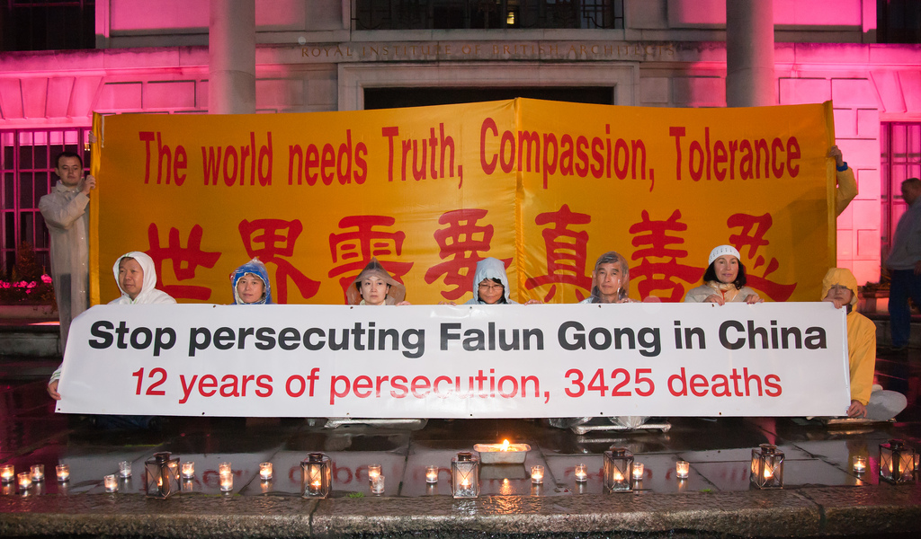 ![]() 法轮功学员冒雨在中共英国伦敦大使馆前举行反迫害烛光守夜活动 |