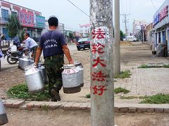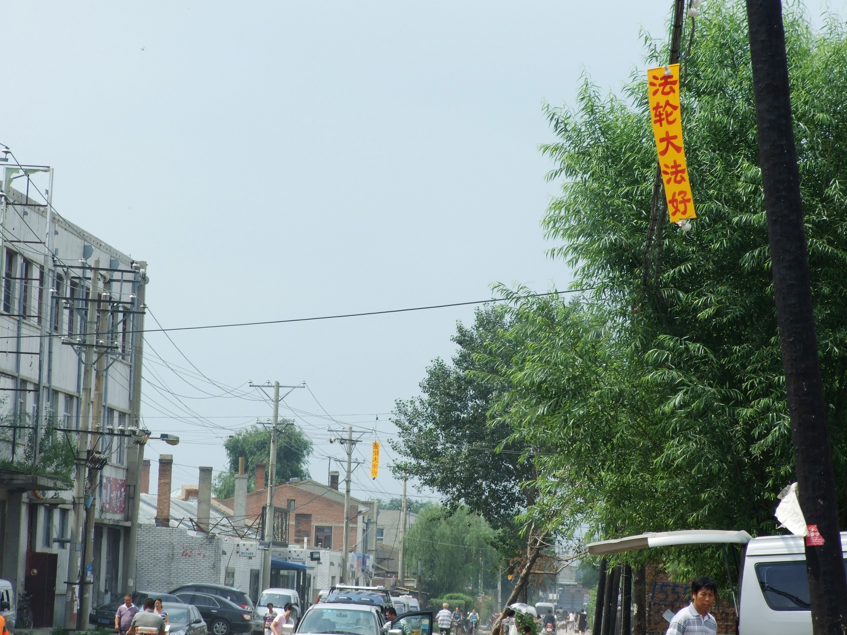 以下是街头出现的真相不干胶和法轮大法好条幅。