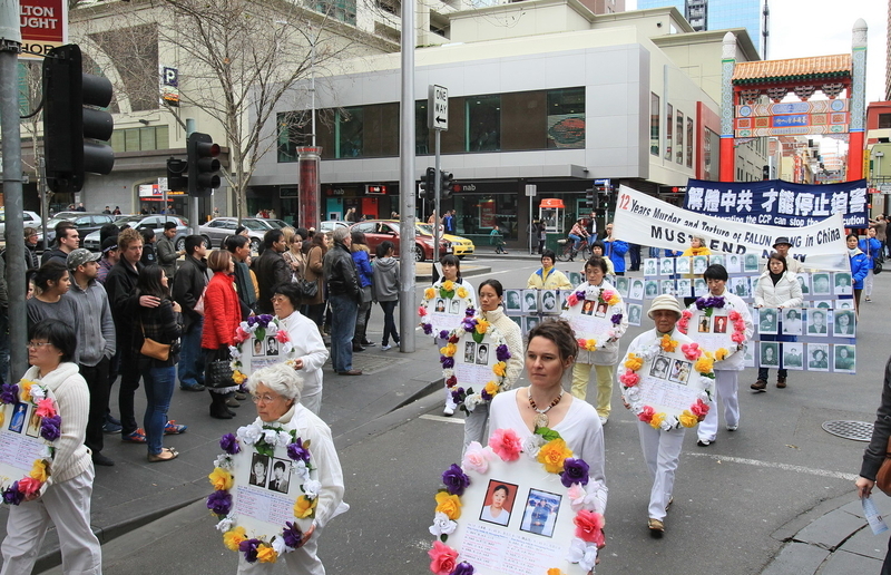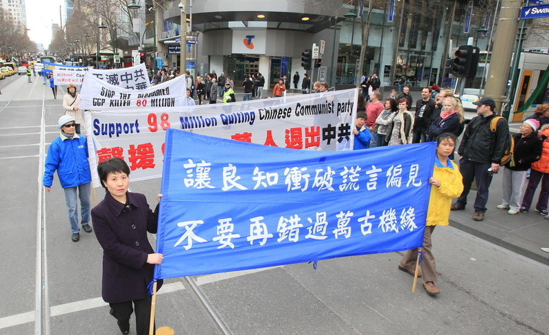 ![]() 7‧20反迫害12周年游行队伍经过墨尔本市中心唐人街 |