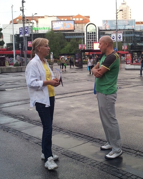 ![]() 法轮功学员在贝尔格莱德市街头讲真相。 |