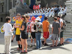 ![]() 法轮功学员在向民众讲真相、征签,呼吁停止迫害。 |