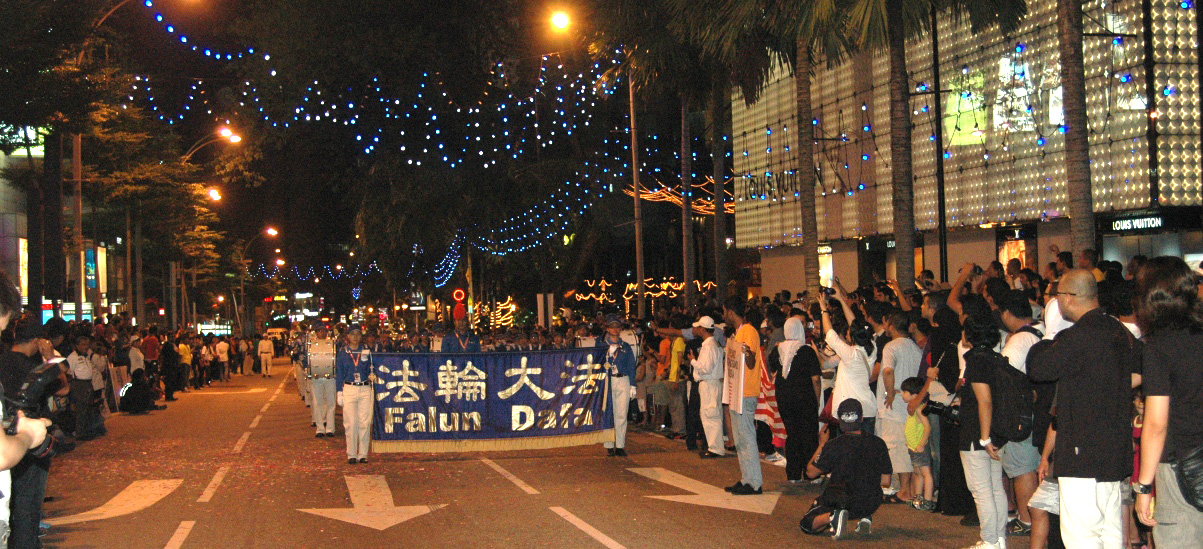 当晚,共有十一支来自七个国家的乐队参与了开幕礼踩街游行。现任世界行进乐队表演协会执行主席罗伯特-埃克伦德(President & C.E.O. WAMSB International, Robert Eklund)、与来自世界各国的评判员均出席观礼。排在第七支出队的天国乐团踏着整齐的步伐,演奏着《法轮大法好》乐曲走向贵宾席,并在贵宾席前定点为民众演奏《欢乐颂》,接着天国乐团继续为大家演奏了《法正乾坤》等乐曲。