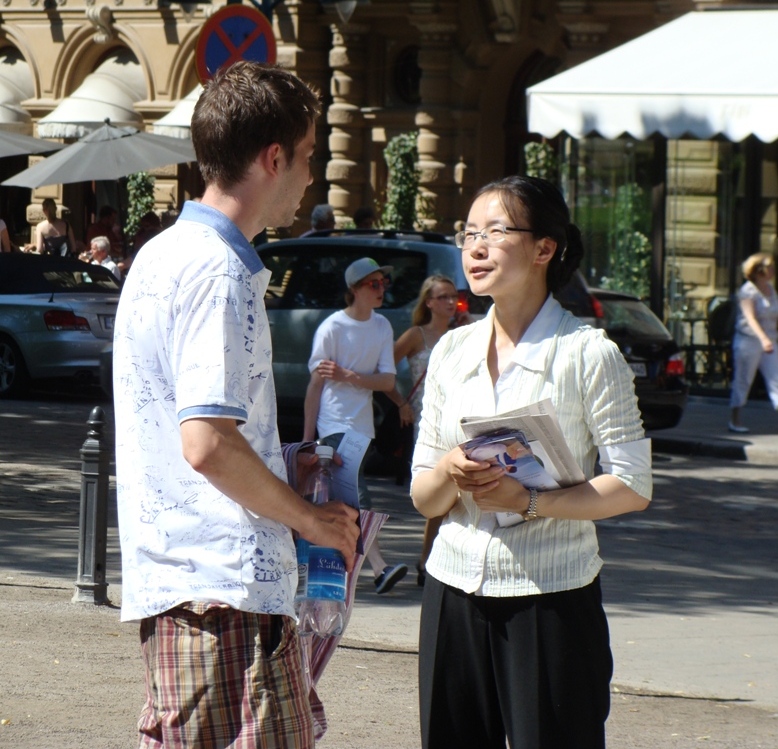 一位先生告诉学员说,他在中国旅游期间,导游告诉他们说不要在公共场合做任何类似气功的动作,不然他们有可能会被抓捕入狱。这位先生不明白为什么。今天在公园看到法轮大法的横幅和演示功法的学员,他想了解更多关于法轮大法的信息。学员为他详细讲述了中共如何残酷迫害信仰“真、善、忍”的法轮功修炼者,并告诉他,中共最怕法轮功学员告诉人们事实真相。那位男士静静地看着学员们演示功法,随后表示他回去一定认真阅读法轮功真相资料。