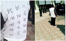 下午,老母亲无奈的再一次穿上状衣,还想争取接见,因为实在太担心儿子。监狱就是不让见,追问原因,让他们出示“不让见”的通知,终于有一个小队长说了一句话:“找胡锦涛去!”