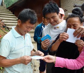 ![]() 收到神韵光盘的苗族妇女诚挚邀请我们家中坐坐 |