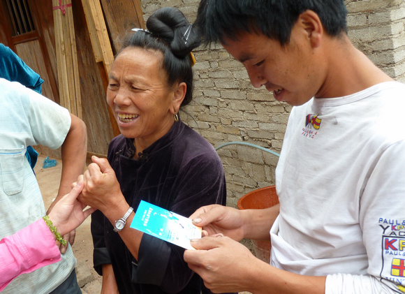 收到光盘的那个苗族妇女拉着一个送福音的学员的手不肯放开,恳切的目光一再邀请我们去她家坐坐。由于要赶车,我们离开时,众人齐声欢送并邀请下次再来。