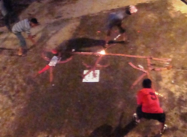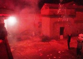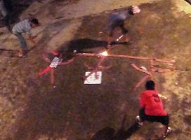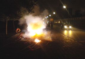 二零零八年八月十五日。我和甲、乙同修到预定的村子发真相资料,我们晚八点骑电动车就出发了,到了要去的村子,在村子的主通道有一个商店,人们在扭秧歌。我们从人群中穿过,在村子的南面放好车子就发资料。当时街道还有几个人拢火驱蚊子聊天,我们就从他们身边走过,如入无人之境,走过去我们就发真相资料、喷标语,做到了向师尊说的那样“一个心不动,能制万动”(《精進要旨二》〈去掉最后的执著〉)。