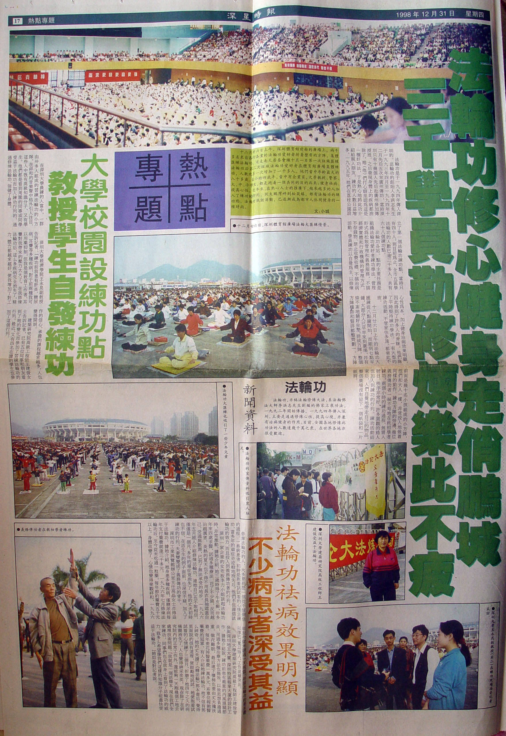 法轮大法的洪传,为沉迷在这个纸醉金迷的城市中的芸芸众生拨开了迷雾。人人皆有佛性,佛性一出,入道得法者不计其数。一九九八年十二月三十一日深圳的《深星时报》刊发了“热点专题──法轮功”的一组报道(如图),就是对那段历史的真实记录。