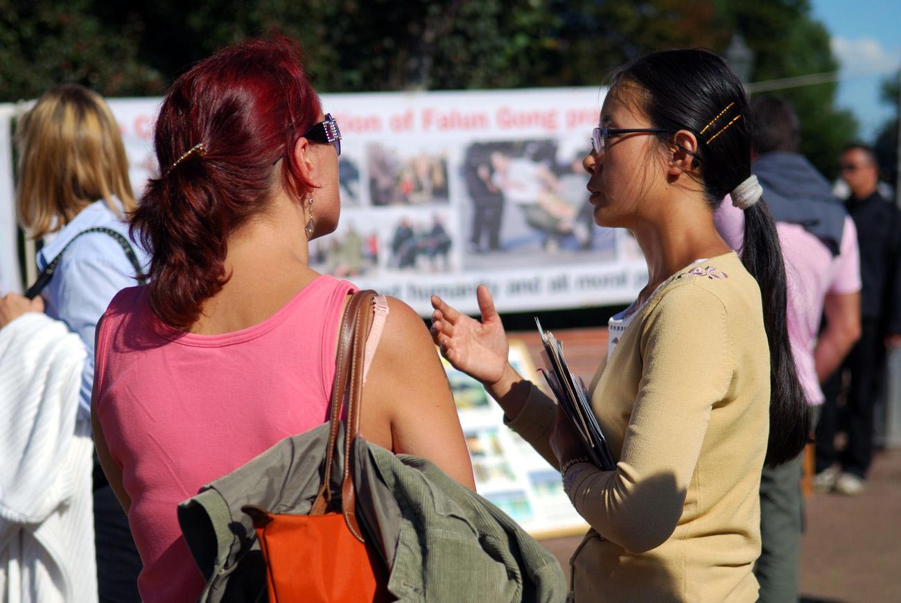 ![]() 路人向学员了解法轮功真相 |