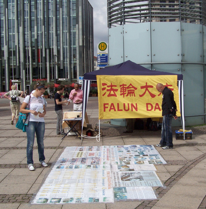 ![]() 莱比锡奥古斯特广场上的法轮功信息台 |