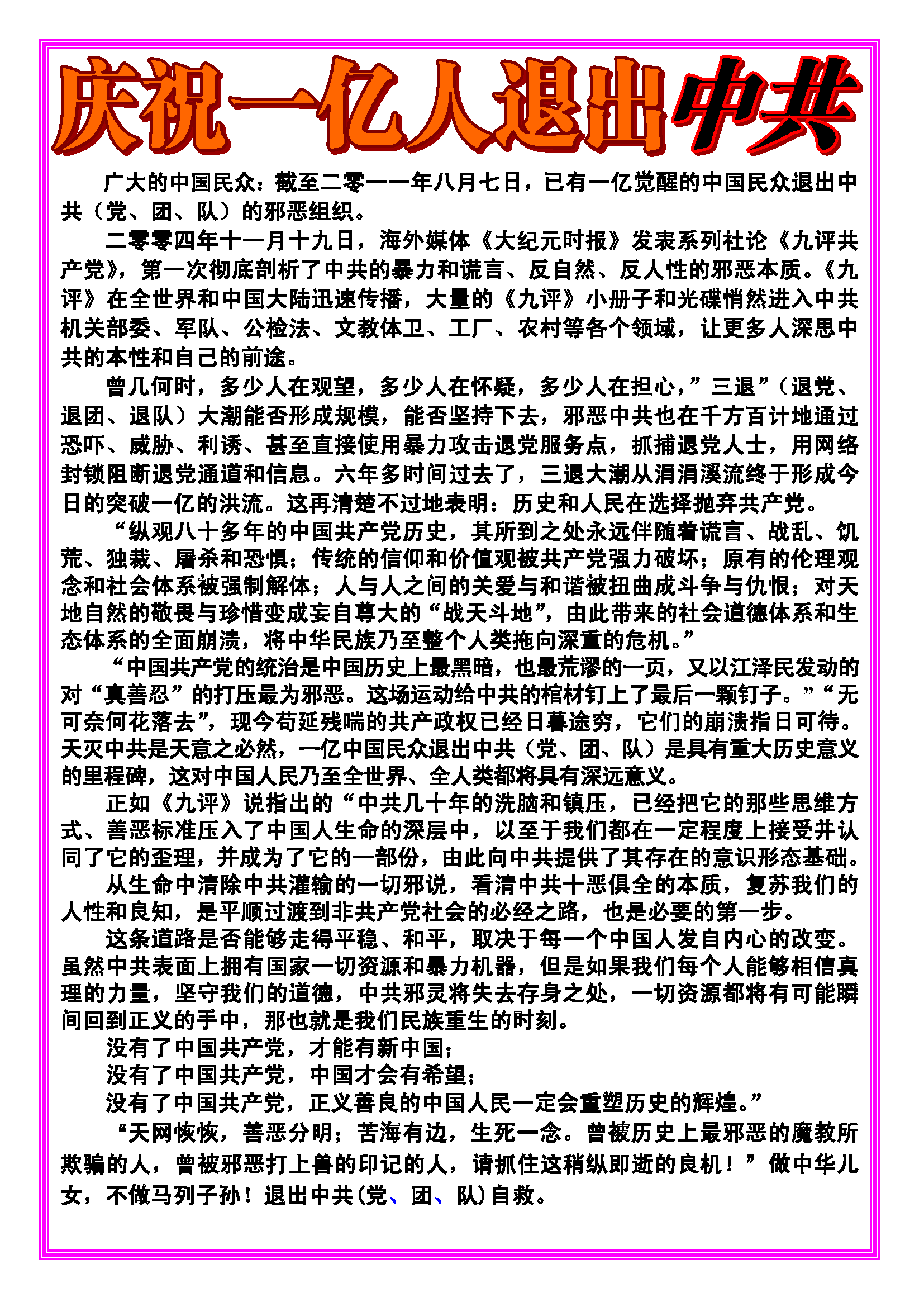 不干胶:庆祝一亿人退出中共