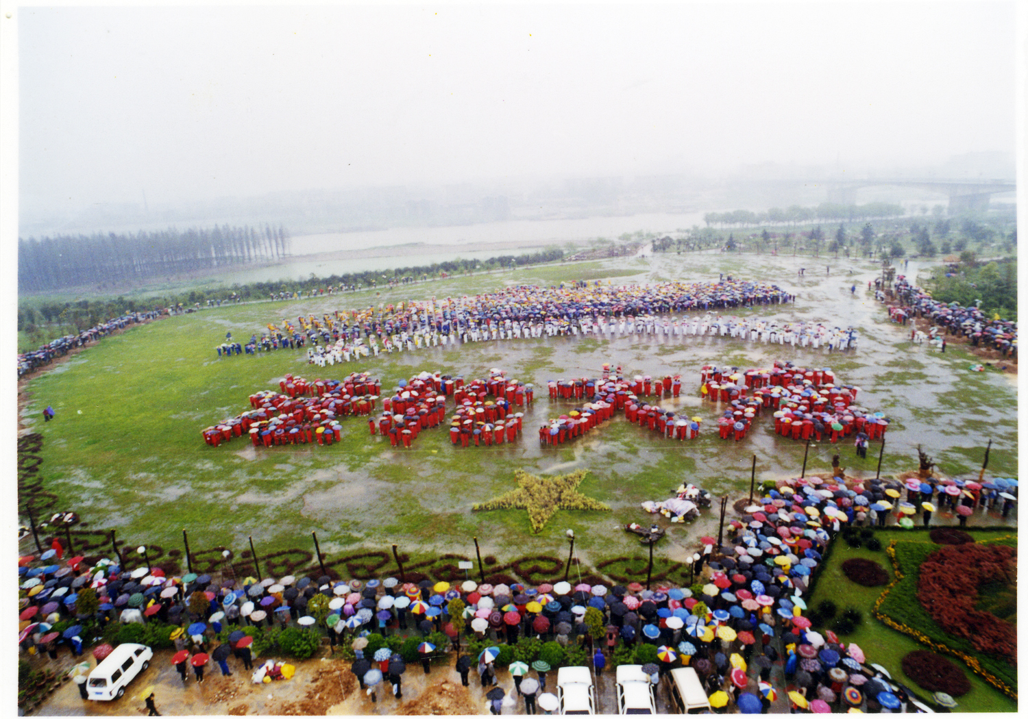 一九九九年四月十一日夜雨大作。然而,风雨和春寒并未阻挡住法轮功学员和世人的到来,武汉市汉阳汉水公园传来了庄严的大法音乐声,参加这次活动的约七千多人。雨中,一个由千名学员组成的“法轮大法”的巨大图案出现在会场正中央,场面壮观无比,令所有与会者震撼!