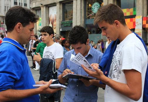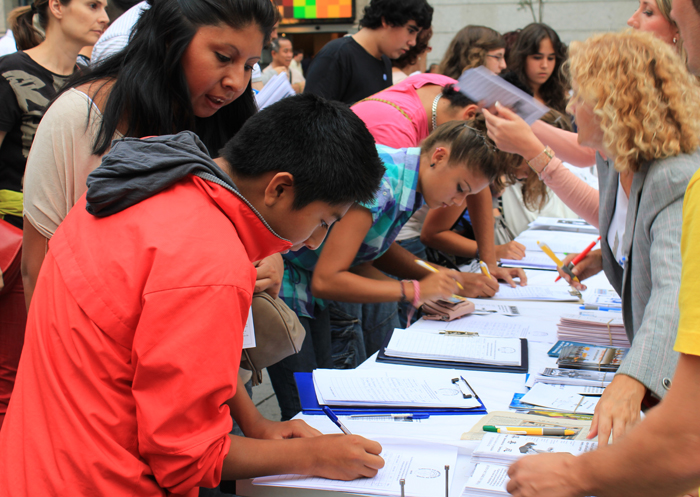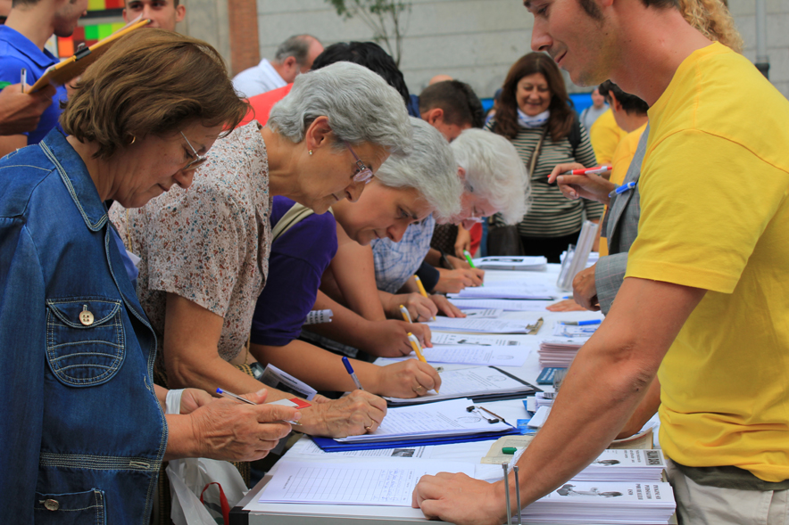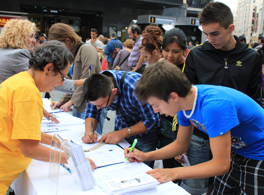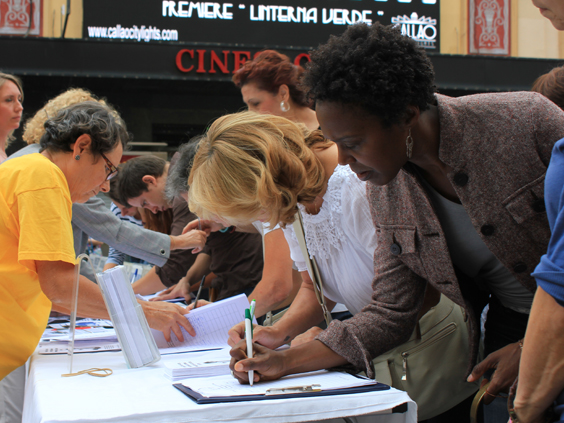 人们纷纷拿取法轮功真相传单并咨询法轮功的更多信息。当得知法轮功在中国遭受残酷迫害,而自己的签名可以帮助制止这种迫害时,人们纷纷在反迫害签名表上郑重签下自己的名字和身份证号码。