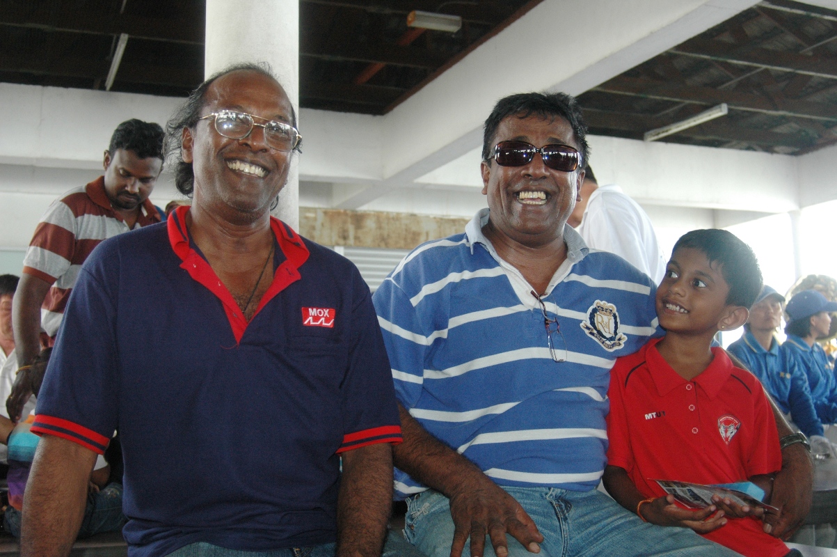 ![]() 从首都吉隆坡来到吉胆岛的印裔两兄弟马尼卡拉惹(中)和默尼安感谢天国乐团的演奏 |
