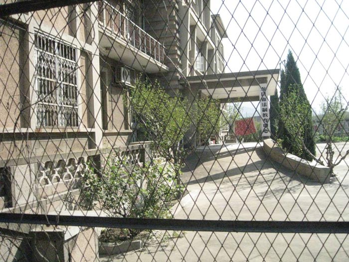 ![]() 龙口市洗脑班。从西南方向拍摄,隔着铁丝网做成的大铁门,可以看到挂着的 “法制教育中心”的骗人的大牌子。 |