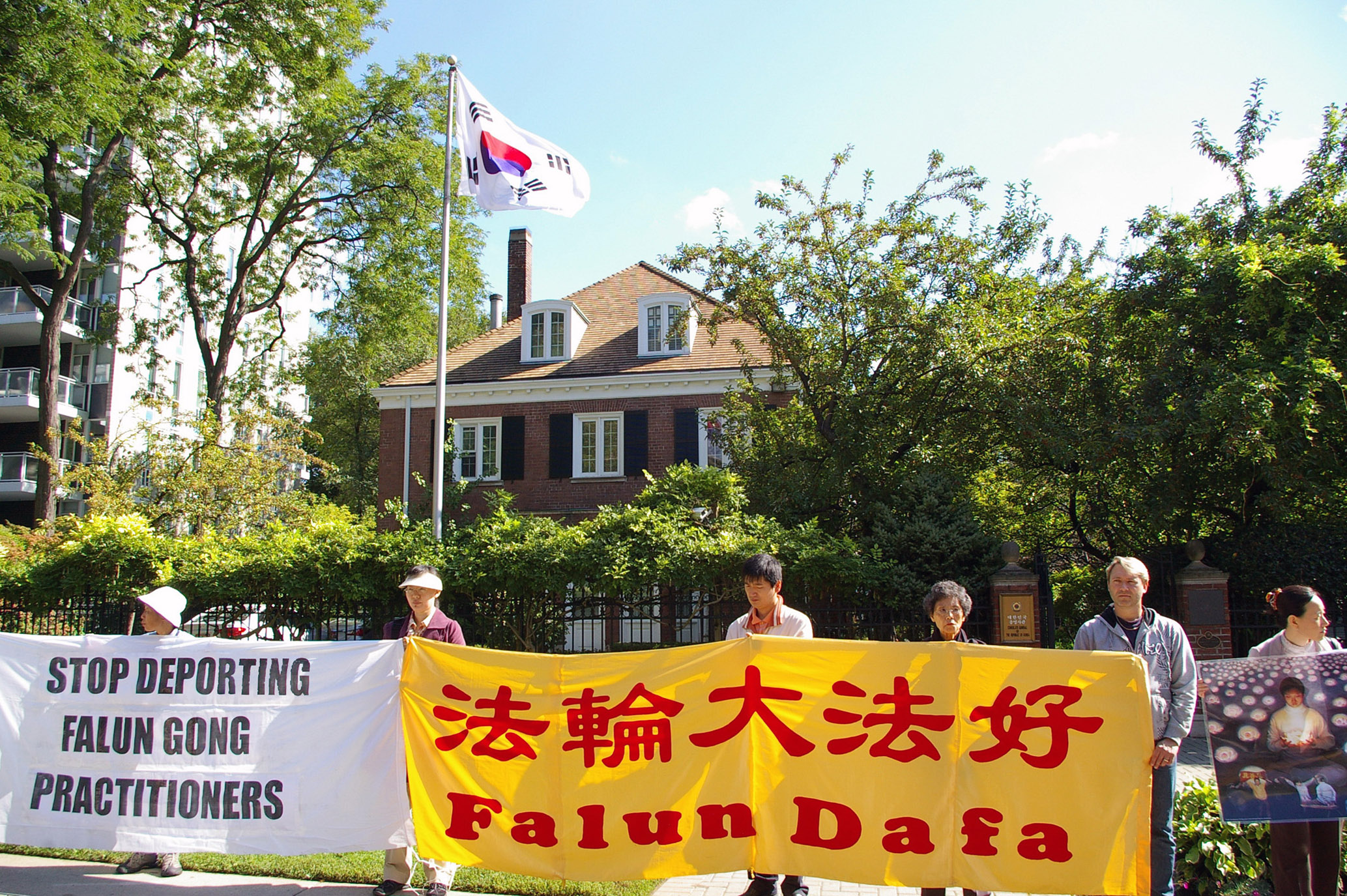 ![]() 法轮功学员在韩国驻多伦多领事馆前集会,呼吁李明博政府不要屈从中共压力,停止遣返在韩国的大陆法轮功学员。 |