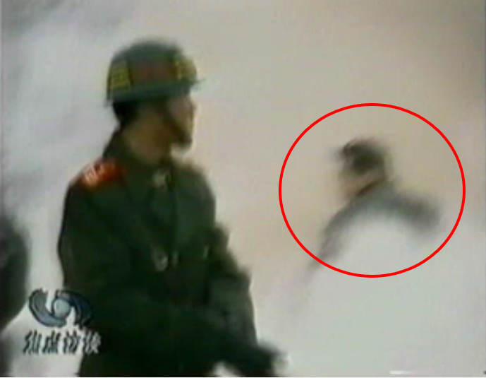 ![]() CCTV“自焚”节目慢动作分析-3:重物逆着灭火器喷射流飞向警察 | ![]() CCTV“自焚”节目慢动作分析-4:一名身穿大衣的男子正好站在出手打击的方位,仍然保持着一秒钟前用力打击的姿势 |